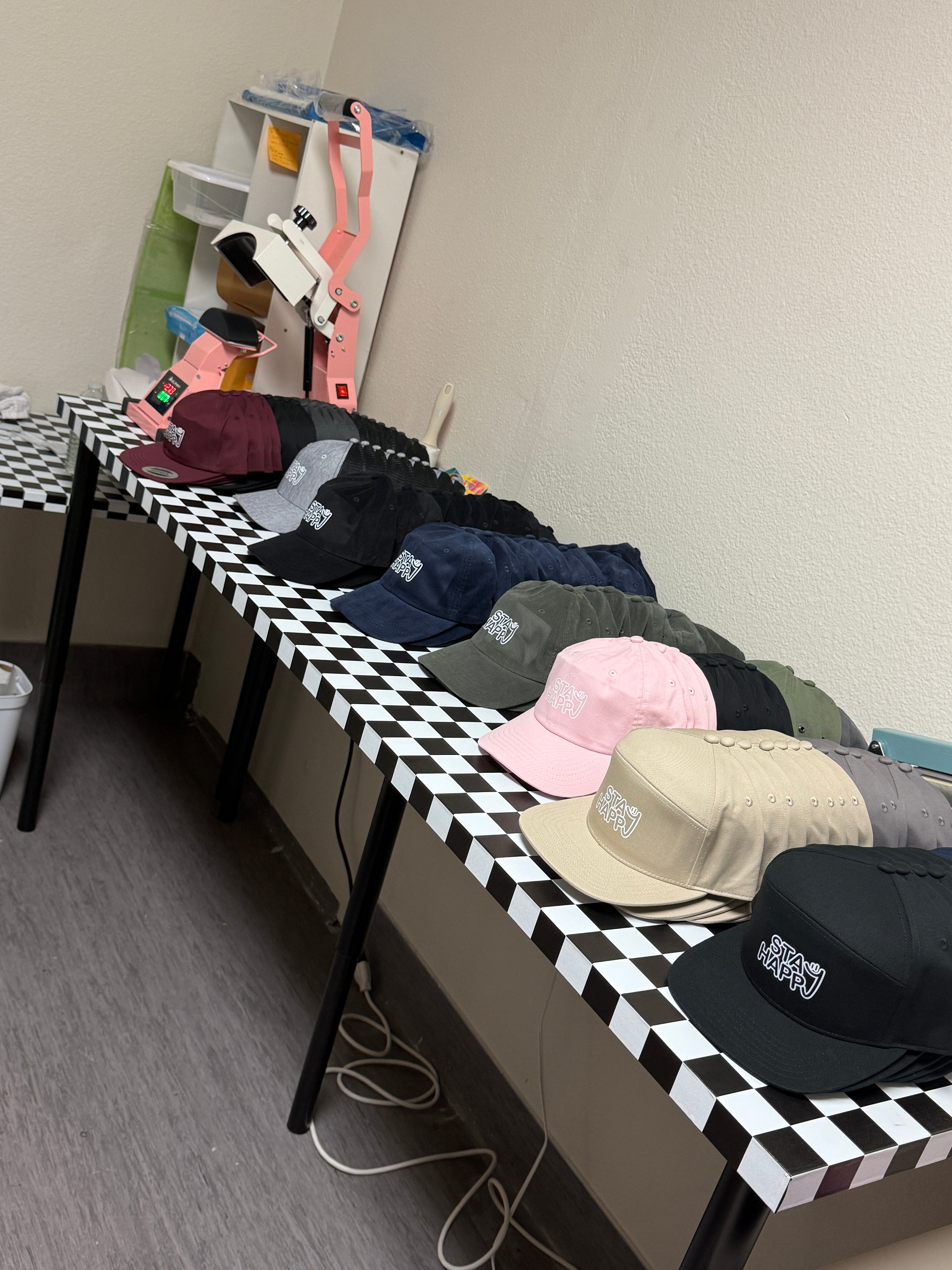 Ready to get Pressed Out? We'll bring your custom hats, shirts, or product ideas to life from start to finish, or anywhere in between! We can create or fix your design, show samples and help you choose the best quality products (or even customize your own items!), and produce your product with high quality, detailed and vibrant designs. Local pick up in San Diego, CA for a quick turn-around.